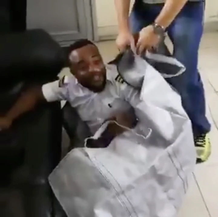 A video has surfaced online showing the pilot of the helicopter that crashed in Lagos playing with death as his colleagues placed him in a body bag.